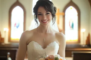 Lo que parecía una ceremonia perfecta cambió en cuestión de segundos. Justo cuando el sacerdote invitaba a la pareja a dar el “sí, acepto”, el hijo de 13 años del novio se puso de pie y pidió que todos esperaran. Su mirada estaba fija en el hombro de la novia: había notado una marca de nacimiento muy particular, igual a la de una compañera de su escuela.